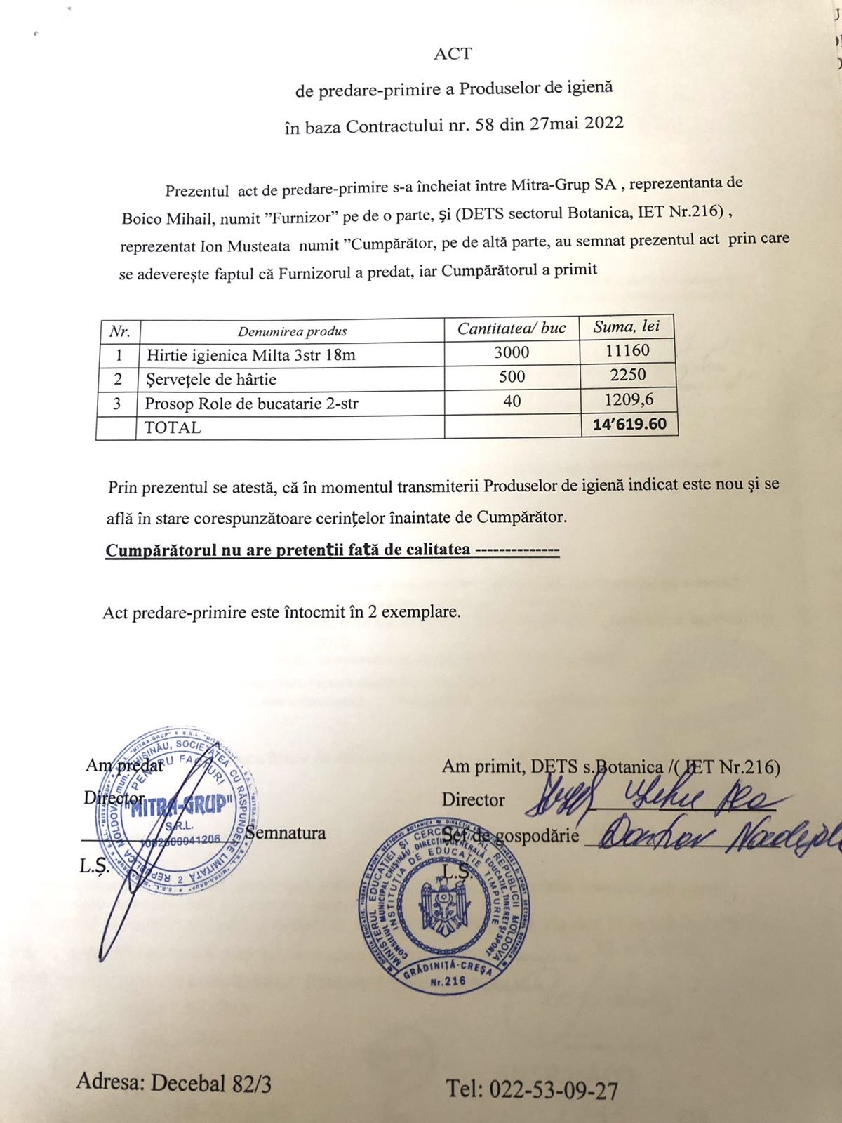 Se monitorizează respectarea perioadei, graficului și calitatea lucrărilor zilnic de către inginerul responsabilul DETS, s. Botanica și conducătorul instituției.